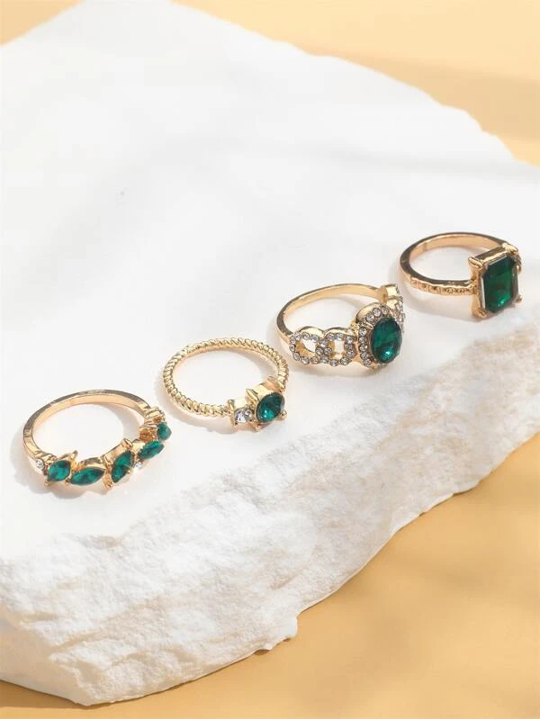 Seja o primeiro a avaliar “4 peças Anel Decoração de strass e pedra verde”