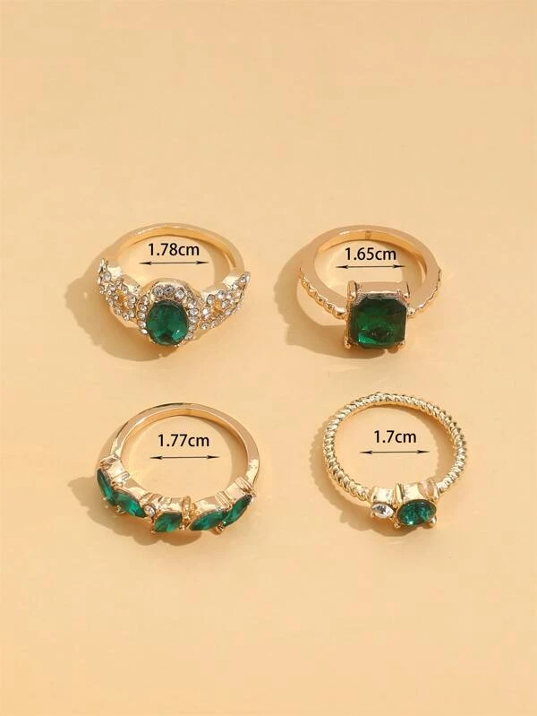 Seja o primeiro a avaliar “4 peças Anel Decoração de strass e pedra verde”